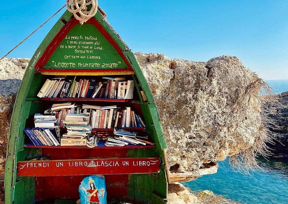 A Portalga, Polignano a Mare (BA), grazie ad una piccola e simpatica idea dai pescatori locali, chi raggiunge la caletta può prendere, donare un libro o leggerlo davanti a un panorama mozzafiato. In alto vi è dipinto un invito: