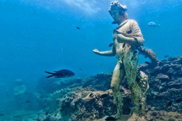 Quella che 2000 anni fa era una delle località balneari preferite dagli aristocratici romani è ora diventato il più grande museo sottomarino del mondo. Per chi ancora non lo sapesse, qui si trovano anche degli antichi mosaici romani. Questi facevano parte dell’antica città romana di Baia, localizzata nel quartiere di Bacoli, a Napoli, prima che venisse sommersa dal mare a causa dell’attività vulcanica nota come “Bradisismo“, come spiega il Parco Archeologico dei Campi Flegrei.