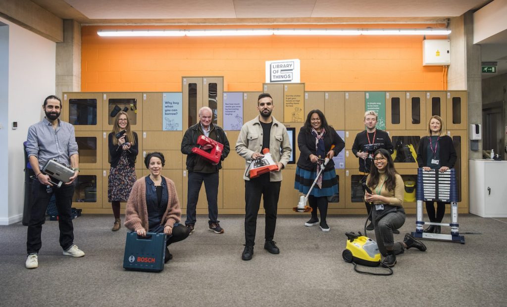 Library of Things è un’iniziativa che coinvolge numerose librerie di Londra e consiste nell’offrire spazi, all’interno delle librerie, dove si può noleggiare di tutto: utensili per la cucina, per il giardinaggio e molto altro. “Le comunità vogliono alternative promettenti al consumismo”, afferma Rebecca Trevalyan, una pioniera che ha lavorato nel settore per molti anni, prima che diventasse noto.