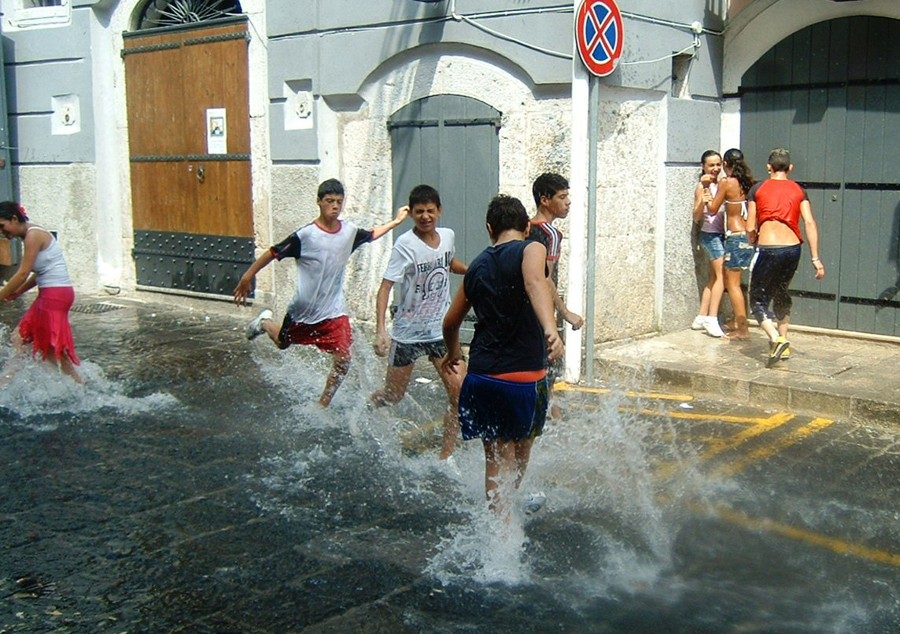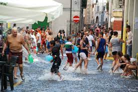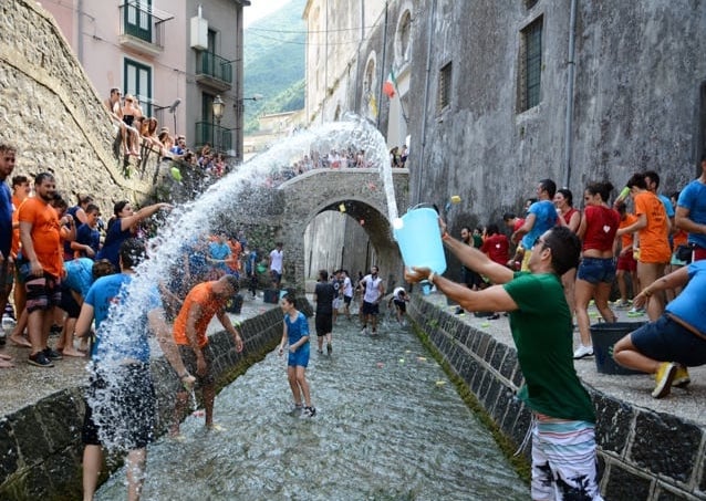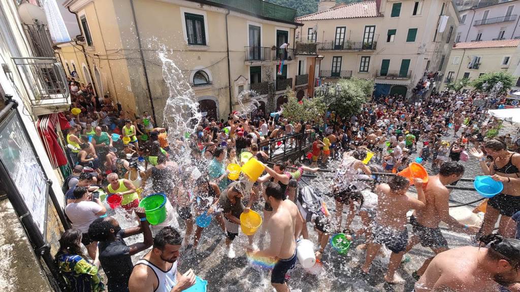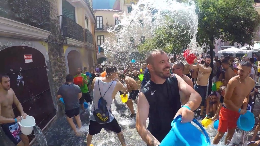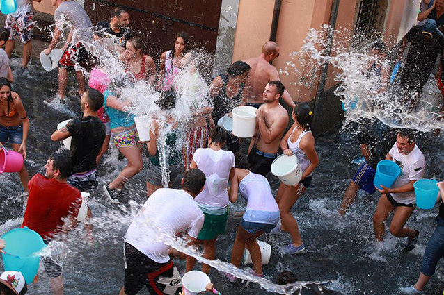si tiene la domenica nel primo pomeriggio in cui chi vuole partecipare potrà, con un secchio, lanciarsi secchiate d’acqua con gli altri partecipanti alla festa, sempre in maniera divertente e civile e conviene mettersi in tenuta da spiaggia