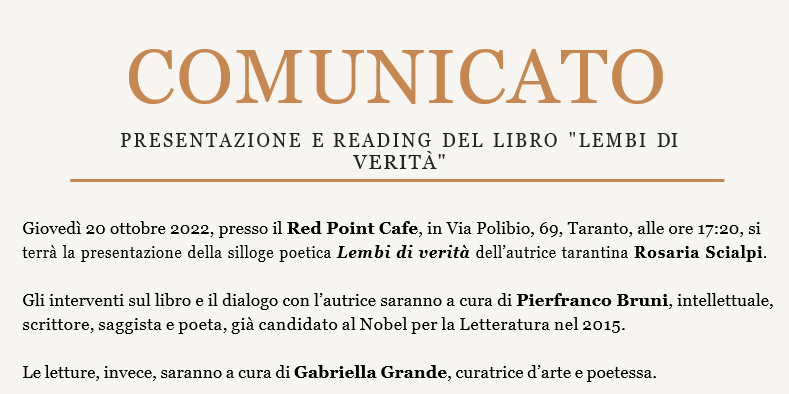 PRESENTAZIONE DEL LIBRO 20 OTTOBRE ore 17:20