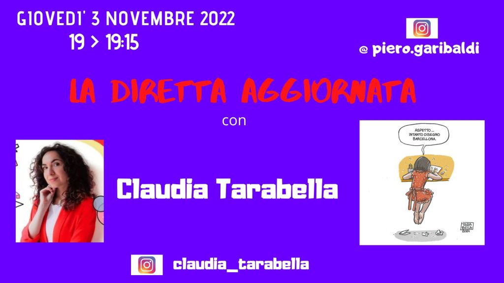 “La Diretta Aggiornata” Giovedì 3 Novembre tratterà l’argomento illustrazione con la grafica Claudia Tarabella. L’ospite interverrà alle 19:00, in collegamento da Viareggio, per raccontare la passione verso il territorio e la cultura spagnola che si trovano al centro di svariati progetti creativi dell’artista toscana.