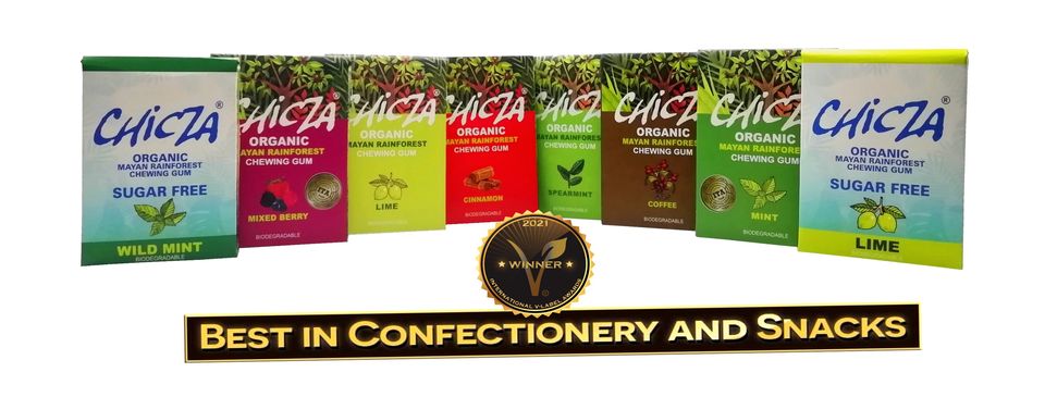 Chicza, un prodotto preparato con tutta la sapienza tramandata dagli antichi Maya, possiede la certificazione biologica e certificazione kosher, ad oggi è l’unica gomma da masticare al mondo in possesso di queste certificazioni. In un mercato vasto e competitivo come quello dei chewing-gum, mantenere lo status di “unica al mondo” dopo oltre 13 anni di commercializzazione è un risultato straordinario e allo stesso tempo ineguagliabile. Ad oggi sono ben 8 i gusti offerti: menta, cannella, lime, caffè, frutti rossi, menta verde, più due formati senza zucchero: lime e menta.