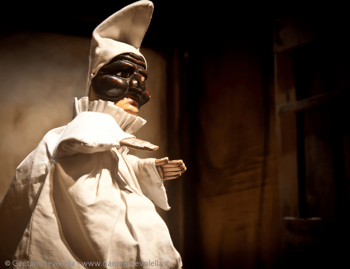 L’arte dei burattini napoletani, teatrini di posa con fantocci di cenci e legno, nasce intorno al XVI secolo con il nome di guarattelle, derivato da guarattino, ovvero burattino. Questi spettacoli sono un’antica tradizione che prende vita ogni anno a Napoli e nel resto della Campania, specialmente durante il periodo natalizio, per il divertimento di bambini e adulti. Tra i tanti personaggi rappresentati solitamente spicca “Pulcinella”, icona indiscussa di Napoli, chiamata anche “la città di Pulcinella”. Nonostante questa machera sia spesso data in pasto al folklore, insegna di pizzerie e ristoranti di quartiere, la storia della maschera napoletana di Pulcinella è intrisa di fascino e significati.