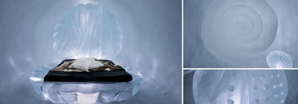 Qui prendono vita camere da letto e spazi con forme artistiche ghiacciate di ogni tipo, opera di diversi artisti europei, che sono invitati a partecipare ogni anno.