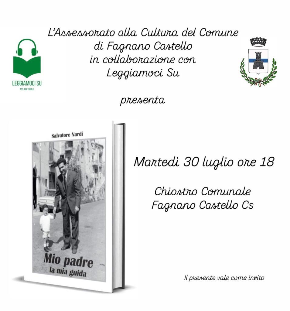 Martedì 30 Luglio alle ore 18:00 l’Assessorato alla Cultura del Comune di Fagnano Castello e l’Associazione Culturale “Leggiamoci Su”, presso il Chiostro Comunale, presenteranno il libro “Mio padre la mia guida” , un testo attraverso cui l’autore, Salvatore Nardi, ripercorre la vita e gli insegnamenti del padre Carlo, prematuramente scomparso nel 1988.