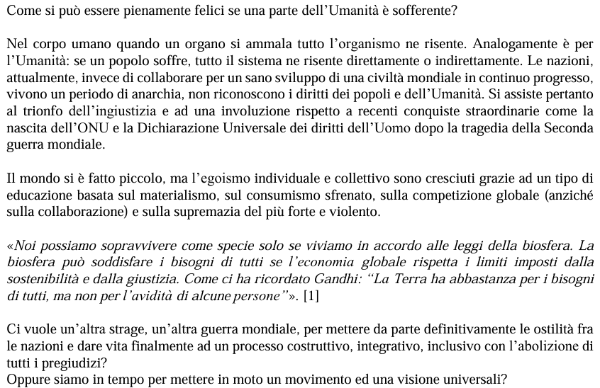 Ci scrive Marco Bresci, Presidente dell’Associazione Culturale Orizzonte Green per condividere con tutti un messaggio di pace. Un messaggio non ideologico, apartitico, non polarizzato, senza critiche personali, per essere il più possibile accettabile, condivisibile, inclusivo, per cercare di ricucire separazioni, per abbracciare tutti coloro che sentono il pericolo che stiamo correndo indipendentemente dalle proprie appartenenze nazionali, politiche, religiose, etniche, filosofiche. Di seguito il messaggio, copiato ed incollato direttamente dall’allegato ricevuto da Marco Bresci, con gentile richiesta di diffusione.